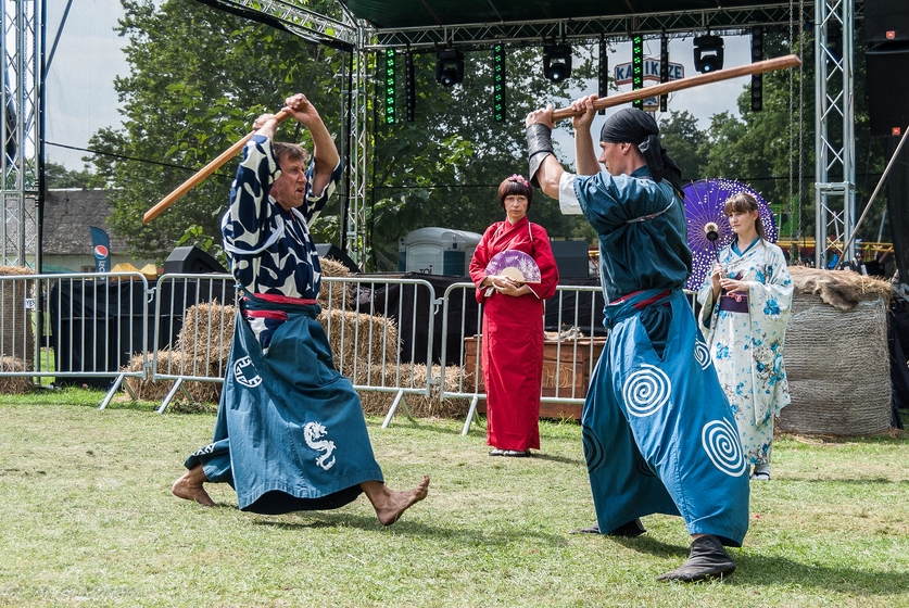Gdy „indianie” zakończyli swoje występy, przed sceną pojawili się „japończycy” z Bractwa Katana. Zaczęli oni prezentować swoje umiejętności w posługiwaniu się mieczami samurajskimi, najpierw bambusowymi, ale później już prawdziwymi. Na koniec zainscenizowali scenkę próby porwania ochranianych przez samuraja dwóch kobiet. Oczywiście o ich los wszyscy mogli być spokojni, mimo przewagi liczebnej napastników, chroniący je wojownik poradził sobie z nadspodziewaną łatwością.